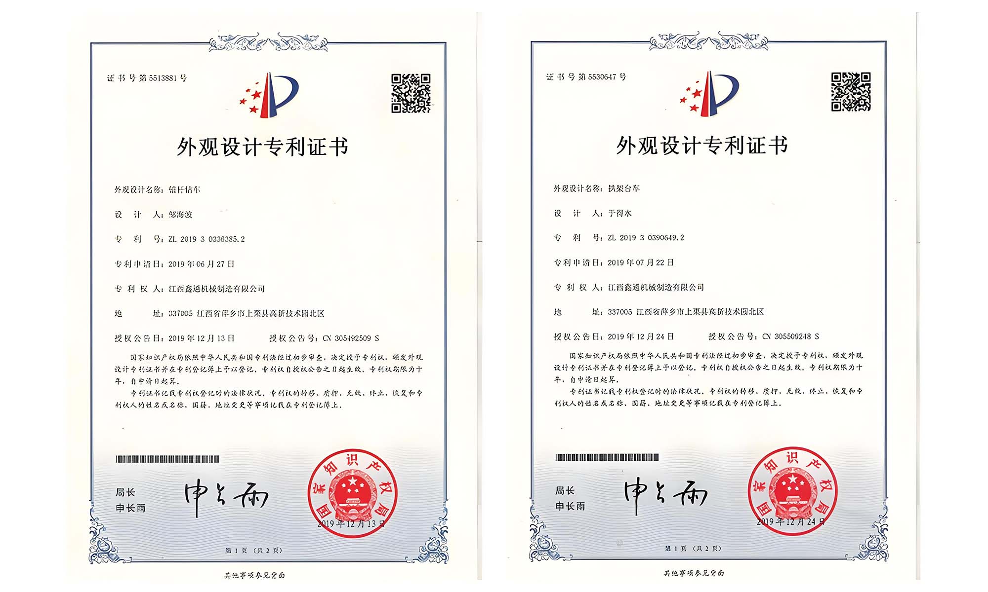 外觀設(shè)計專利證書