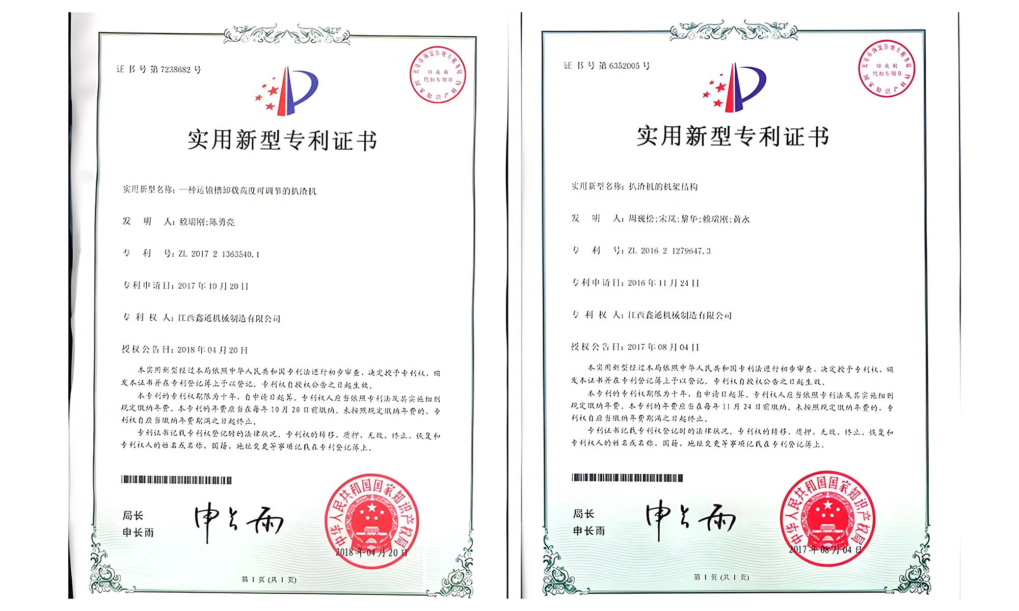 實用新型專利證書